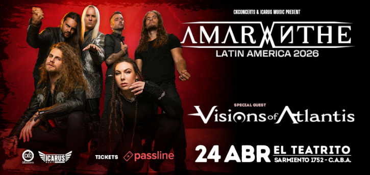 AMARANTHE regresa a Argentina en el marco de su tour LATIN AMERICA 2026! Junto a ellos, se presentará como invitada especial la aclamada banda austriaca de Symphonic Metal, VISIONS OF ATLANTIS.
