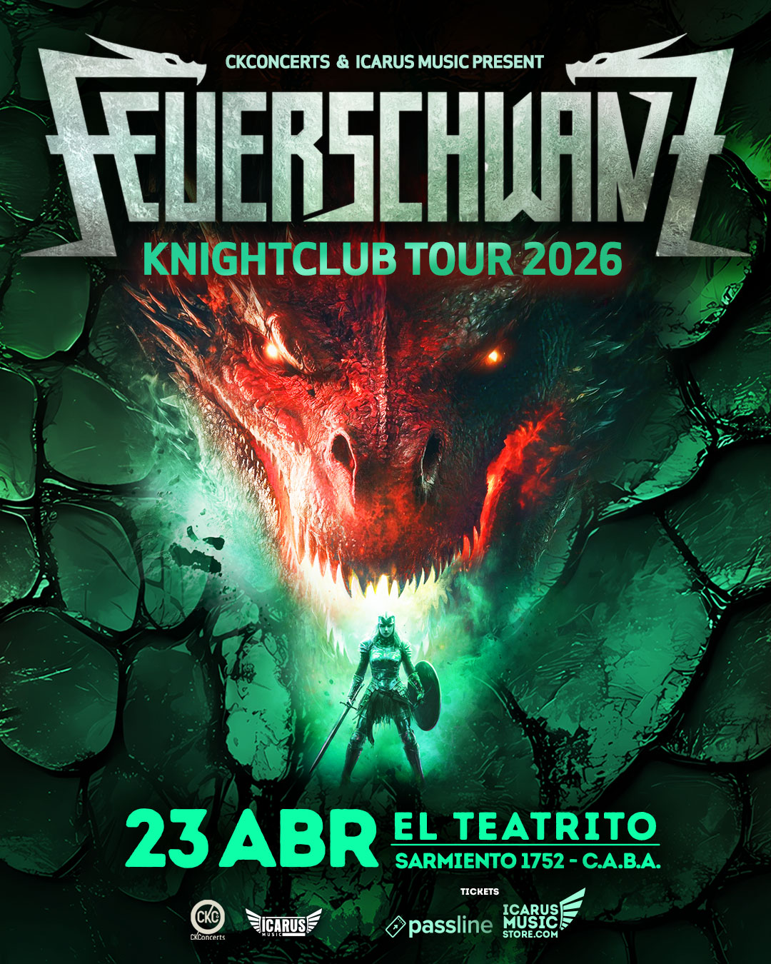 Esta banda es la leyenda que esperabas! FEUERSCHWANZ transforma el escenario en un campo de batalla festivo, mezclando la fuerza del Power Metal con melodías épicas y folklóricas. Su show es una invitación ineludible a bailar, corear y unirse a la camaradería. ¡Una verdadera fiesta épica!