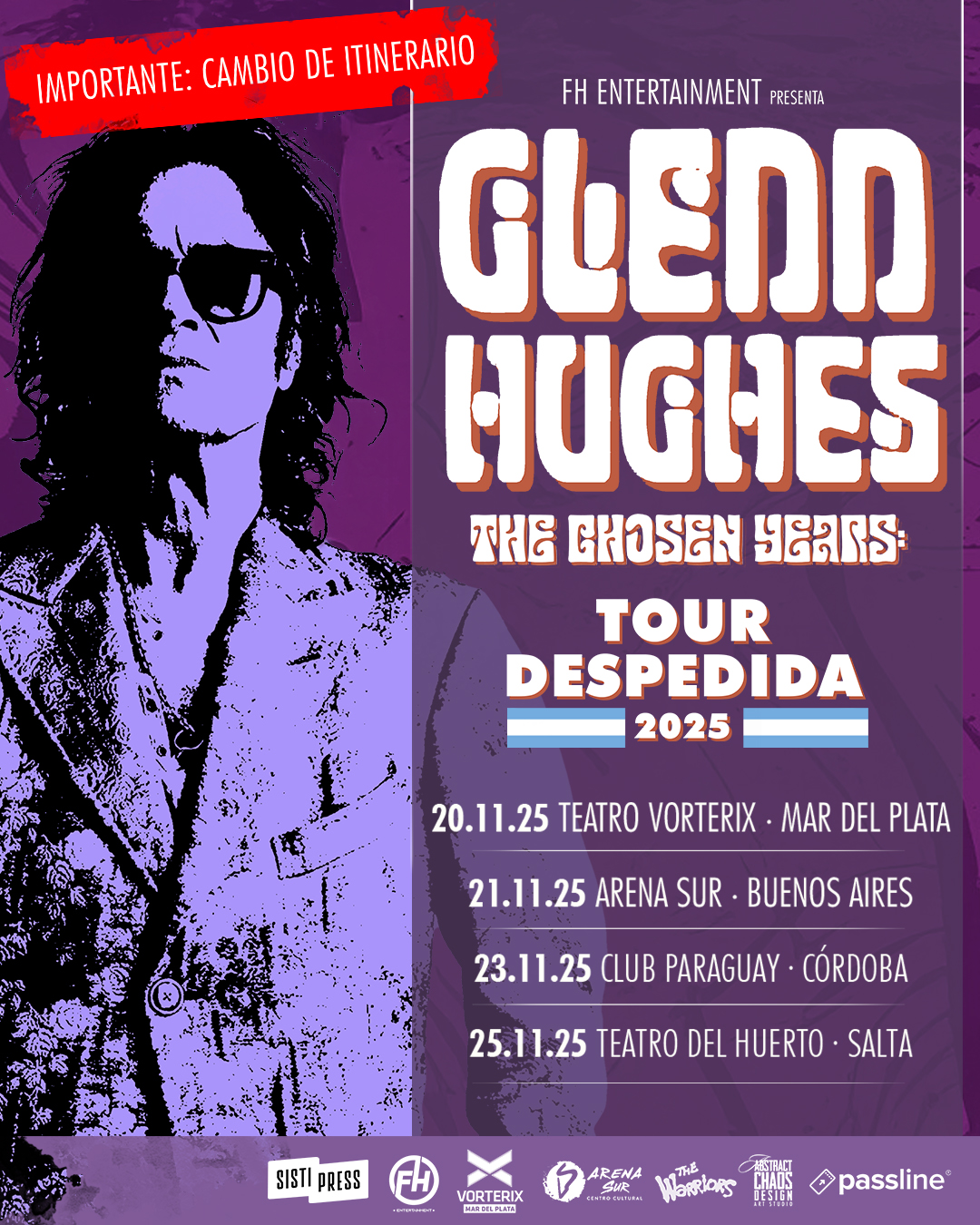 Glenn Hughes llega acompañado por una banda internacional de primer nivel y una puesta en escena impactante, para ofrecer un show cargado de emoción, potencia y nostalgia. Esta despedida será el cierre de una era gloriosa en la historia del rock, y una oportunidad irrepetible para los fans argentinos.