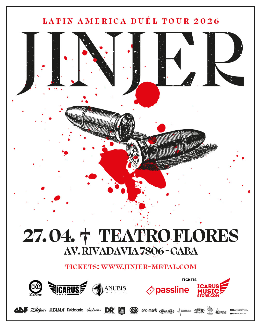 JINJER regresa a la Argentina con su impactante “Duél Tour” para presentar su más reciente álbum (editado en el país por Icarus Music). Liderados por la bestial Tatiana Shmayluk, su mezcla única de Metal te va a volar la cabeza con cambios de ritmo y vocales que son una locura. Si ya lo viste, es digno de volverlo a revivir. Si nunca lo viste, esta es tu oportunidad!