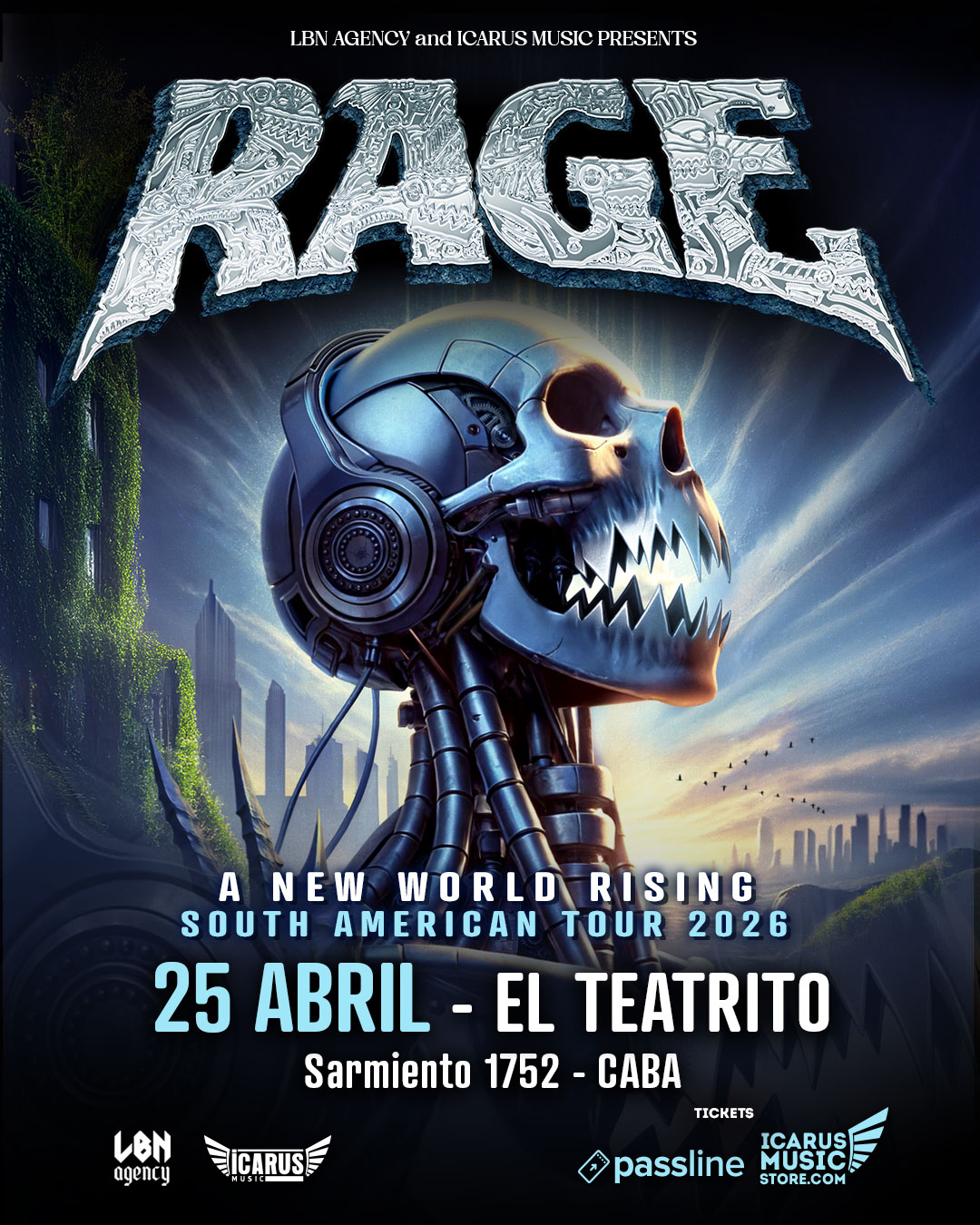Se termina la espera. Los legendarios RAGE llegan con su “A New World Rising Tour” a El Teatrito y esto no es solo un show… ¡es una carnicería de riffs!