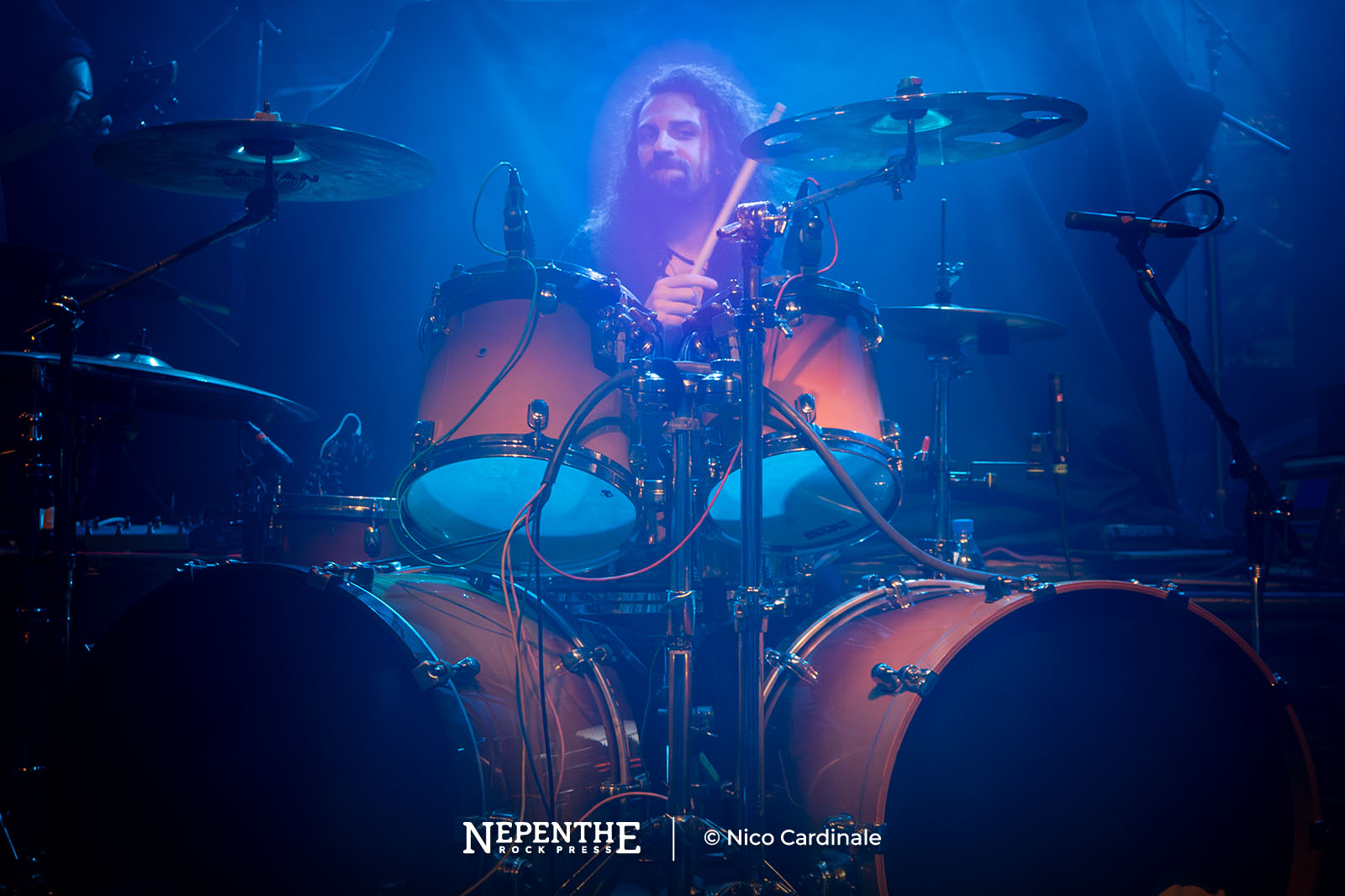 Luego de casi media hora de preparaciones, a las 20 las luces se apagaron y los austríacos Visions Of Atlantis pisaron el entablado en el que estuvieron por primera vez en 2019 en su debut en nuestro país. Teniendo en cuenta su prontuario de cambios de miembros, es sorprendente que, 7 años después, el grupo de Thomas Caser mantenga la misma alineación de aquella ocasión.