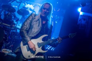Con este contexto, la agrupación del guitarrista Olof Mörck salió al escenario a las 21:30 rompiendo el silencio con “Fearless” para arrancar su set. El público se hizo notar en todo momento, especialmente con el tándem inicial continuado por “Viral”, “Digital World”, “Damnation Flame” y “Maximize”.