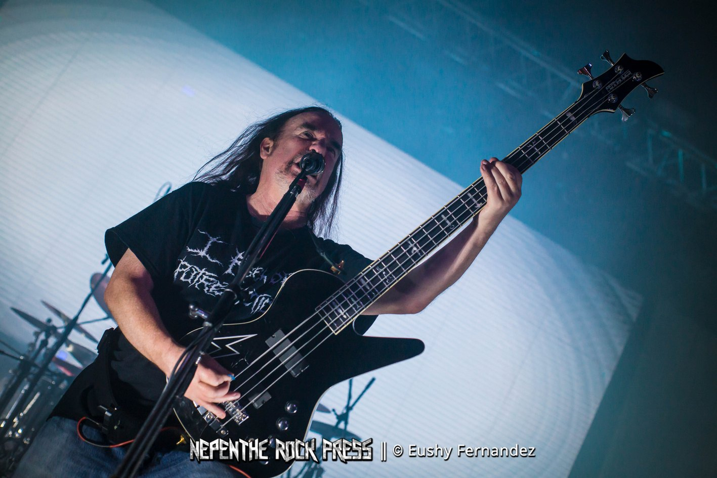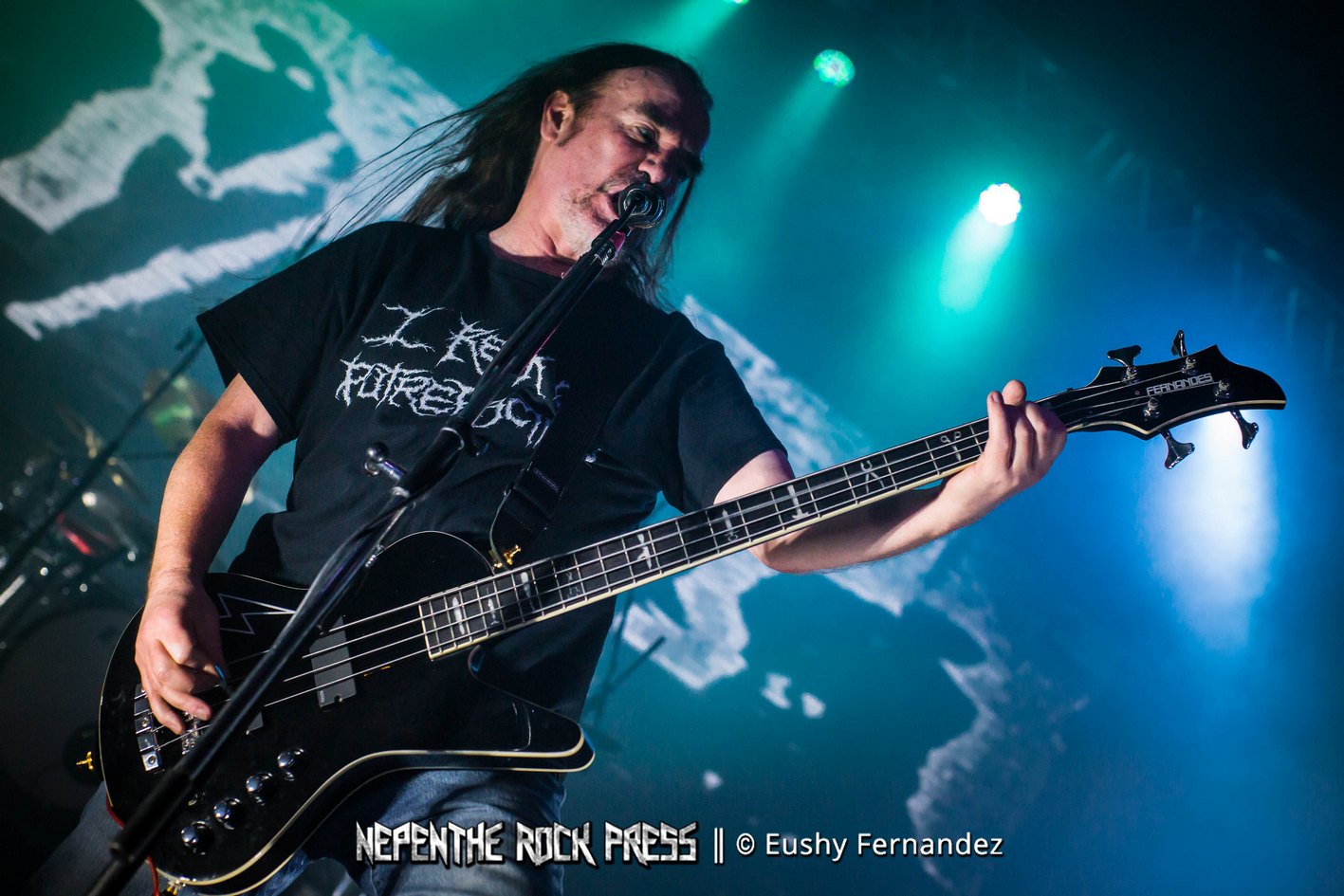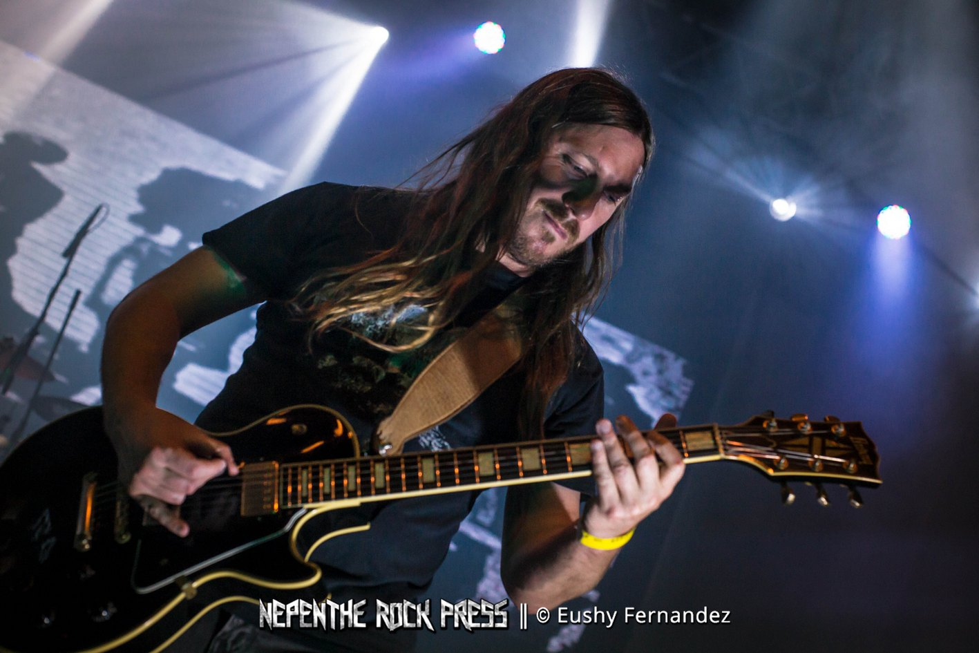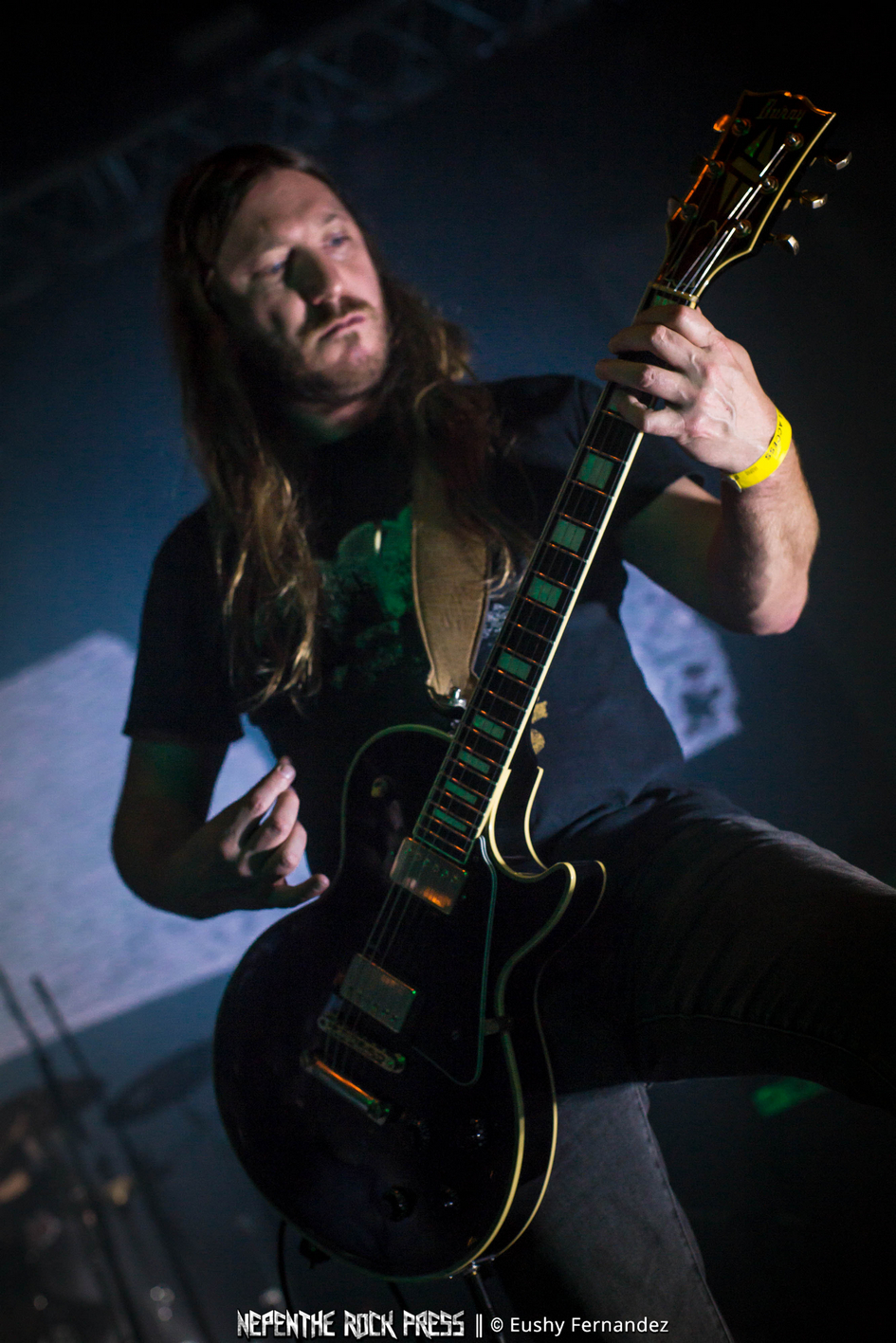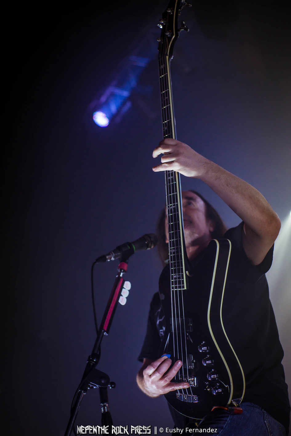 El teatro ya estaba lleno, todos esperaban por CARCASS. El telón se abrió, el escenario estaba cubierto por humo y luces blancas mientras sonaba el riff de “Buried Dreams”. Uno a uno los músicos fueron apareciendo en el escenario, una vez posicionado Daniel Wilding, el baterista, comenzó a tocar. El escenario se tiñó de rojo. Una vez iniciada la canción apareció Jeff Walker para arengar a su público. Comenzó la masacre.