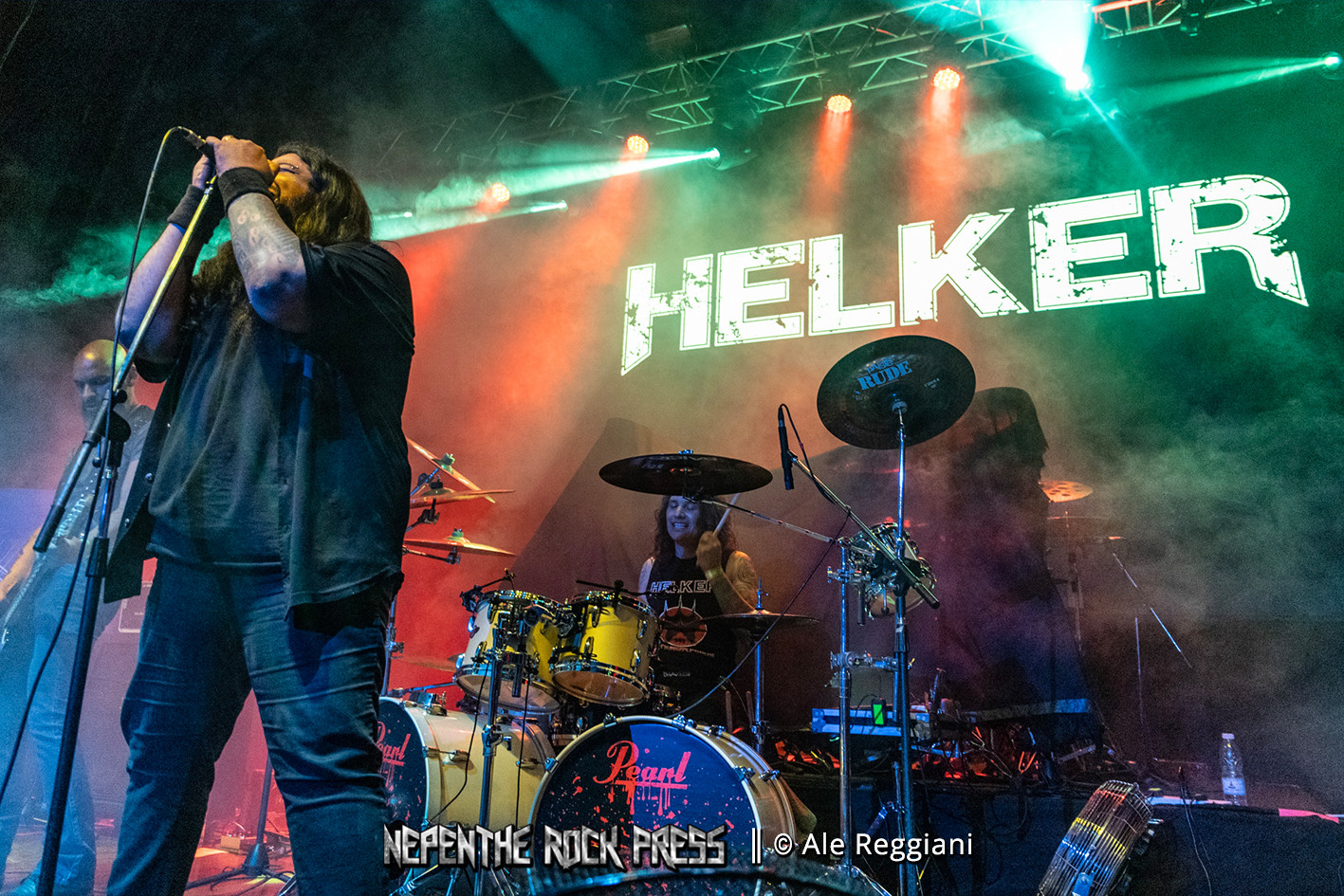 Antes de adentrarnos en contarles lo que fue la presentación de Dirkschneider en si misma, vale contar que quien recibió al público presente fue la banda local HELKER, quienes al igual que Dirkschneider, contaban sobre el escenario con un miembro fundador y músicos que se fueron incorporando en la banda ante el recambio de integrantes. Mariano Rios está al frente de la banda con su guitarra desde los comienzos pocos años antes del 2000, alla por el ’98, Hernán “Cuta” Coronel en batería, Mauro Tranzaciones en guitarra, Juan Manuel Acosta en bajo y Matías Ochoa en voces.