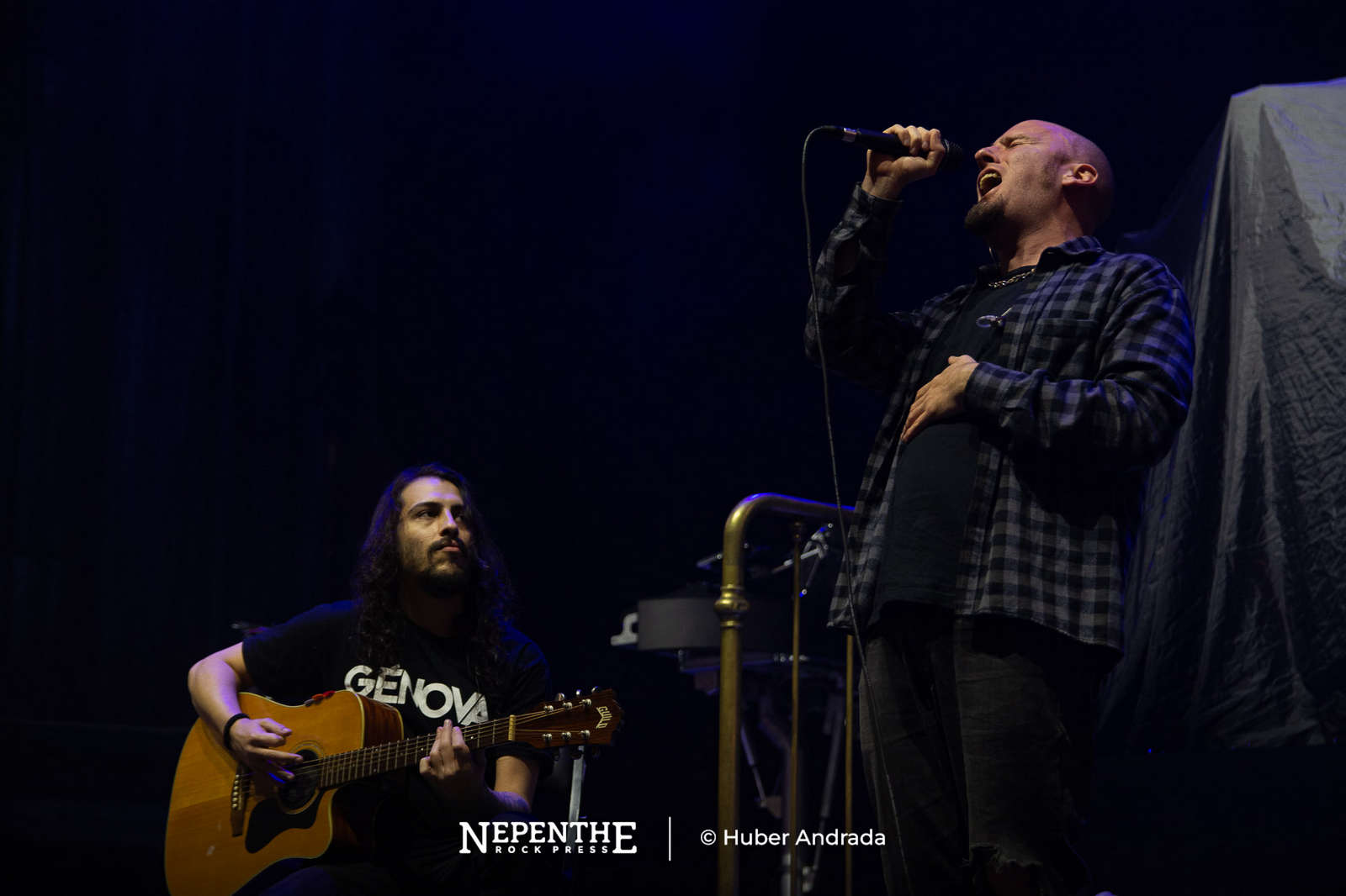 A las ocho en punto, frente a un Movistar que terminaba de acomodarse, salieron los músicos de Génova. Con una propuesta despojada pero potente, centrada en la guitarra acústica de Nicolás Messina y la voz de Lucas Aguirre, el dúo demostró la solidez de esta banda del oeste bonaerense con 15 años de trayectoria. A pesar de alejarse de su habitual metal alternativo para este formato, ofrecieron un set impecable. Comenzaron con temas de su último registro, “Cianuro”, y en media hora redondearon una presentación que recorrió su historia, dejando en claro que la fuerza compositiva trasciende los géneros.