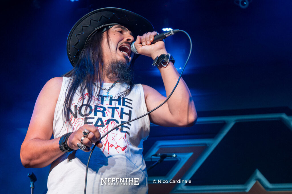 Steve descansó un momento de la guitarra para dedicarse solo a cantar “Synchronized”, el tema más reciente que tocaron en la noche, y volvió a agarrarla para lo que sería un repaso por su segundo disco “Tough it Out” de 1989.