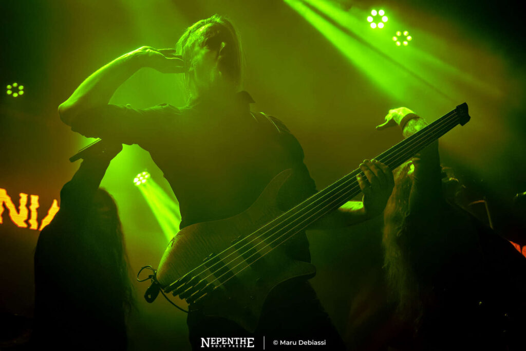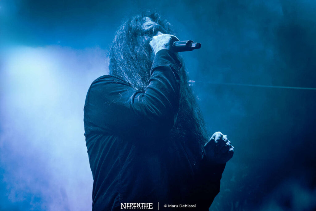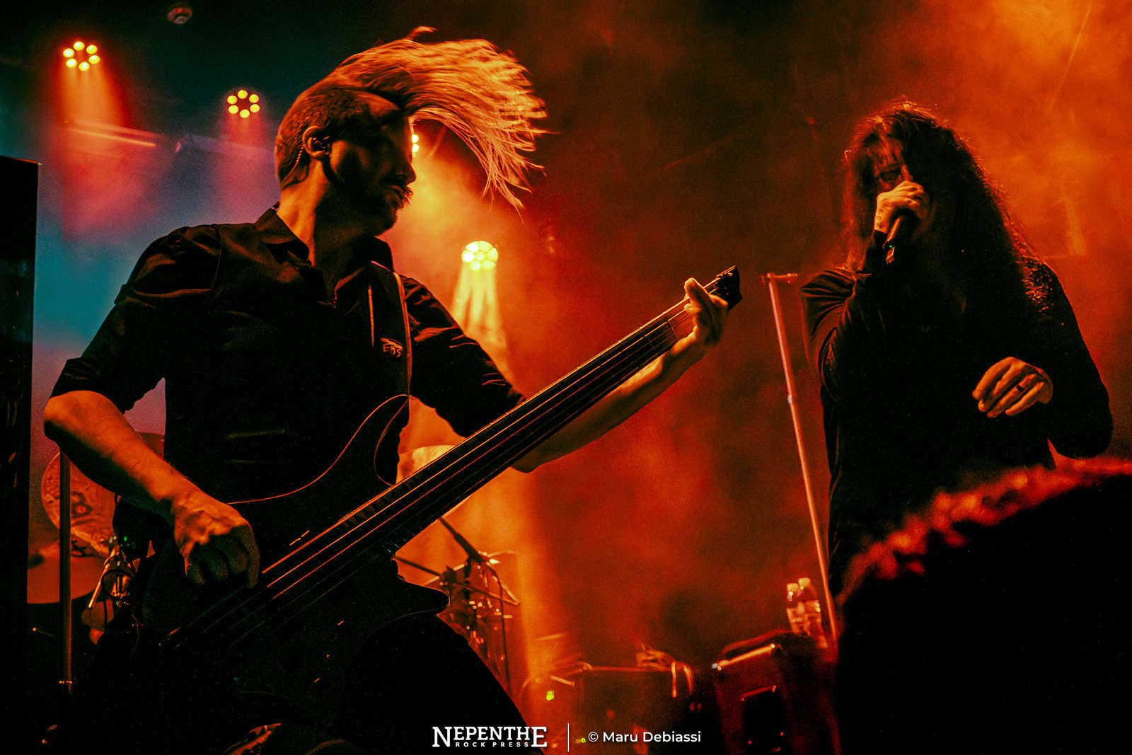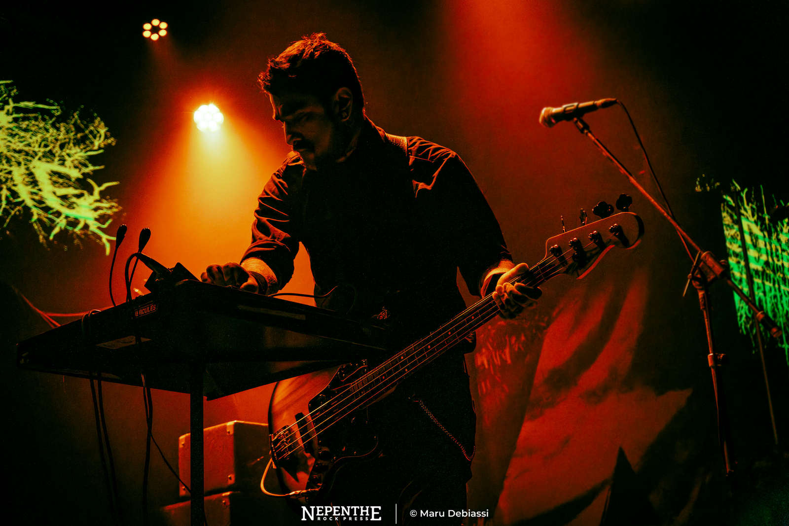 Ese día DIOS SERPIENTE abrió el show, desatando curiosidad. El proyecto solista de Leandro Buceta es una propuesta black única. El músico se posicionó en el centro del escenario con su bajo y a su costado un sintetizador. Con pistas de batería de fondo, las cuatro cuerdas saturadas de oscuridad y distorsión se mezclaron con la voz gutural de Leandro. Fue la creación de un mundo distópico a la merced de un hombre y su caos.