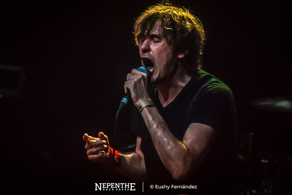 El cantante, de 56 años, se mostró como si fuera uno más entre los jóvenes del público, gesticulando y moviéndose por todo el escenario con una energía poco usual en personas de su edad. Se mostró muy afable con los osados de subirse al entablado durante el mosh pit, aunque tuvo que contenerlos de que arruinen la pedalera de la guitarra al subirse.