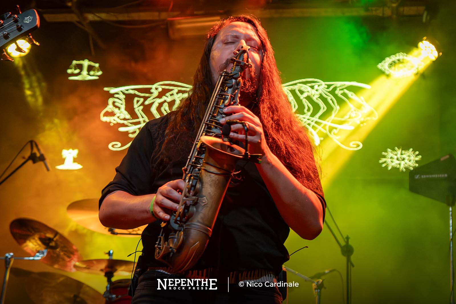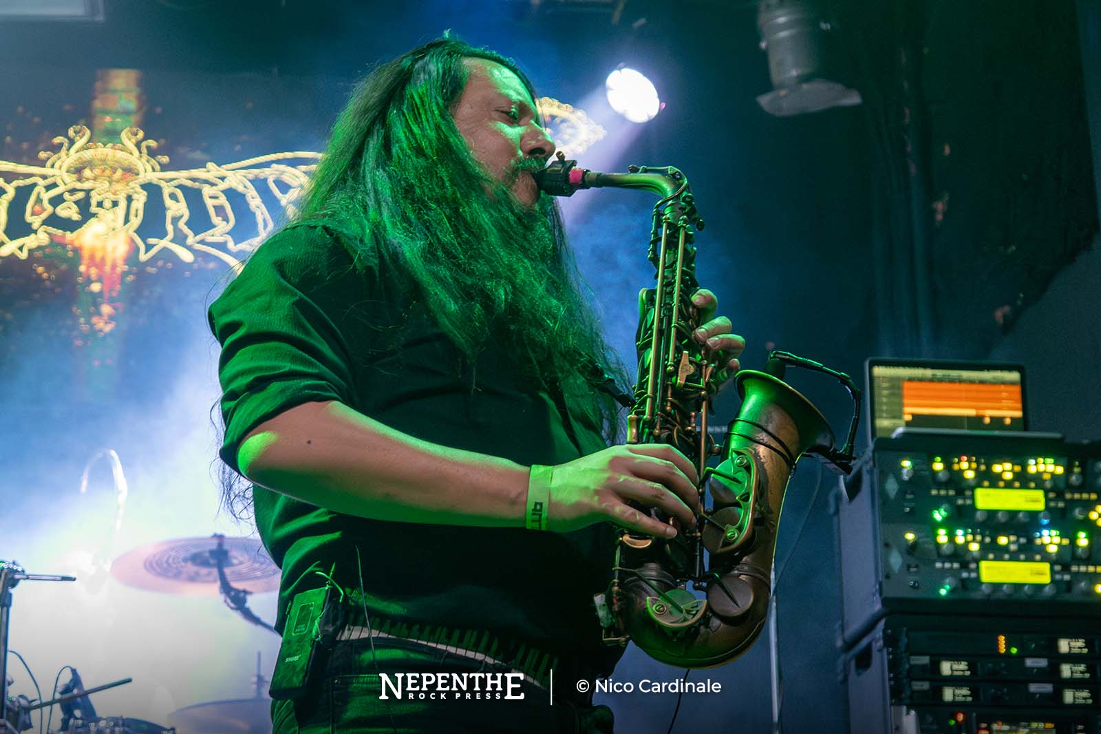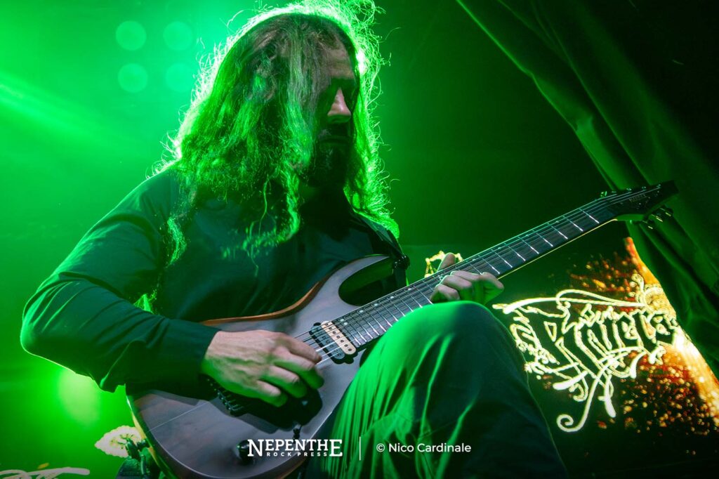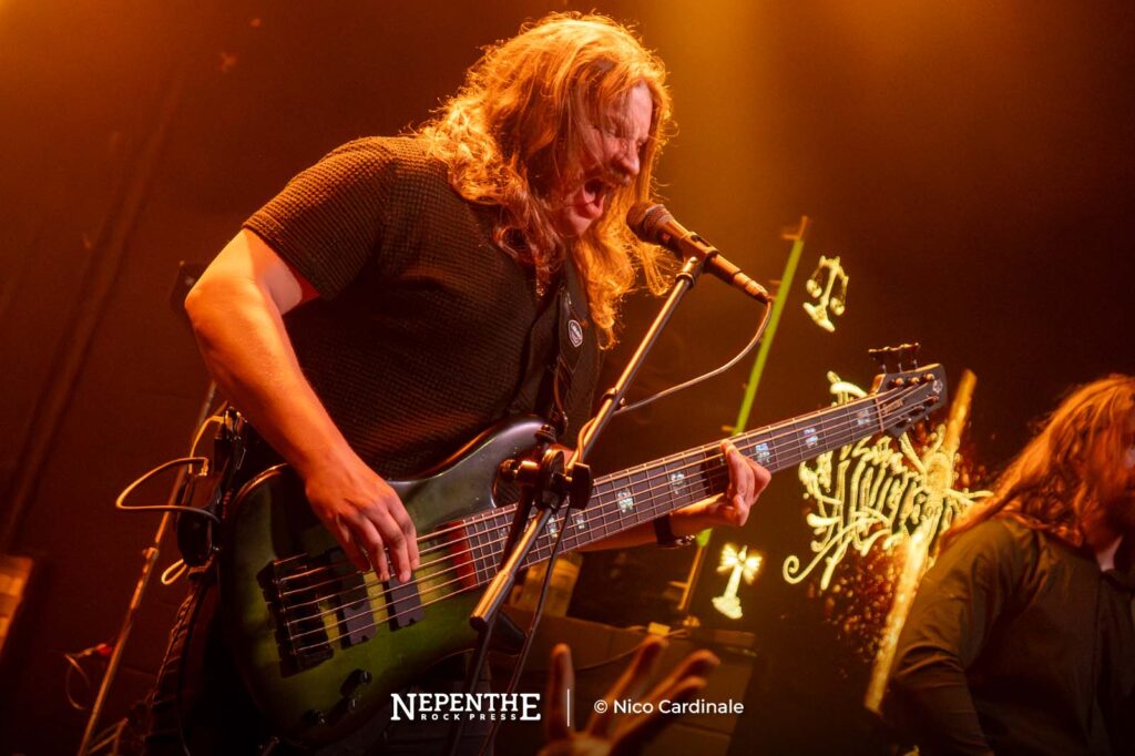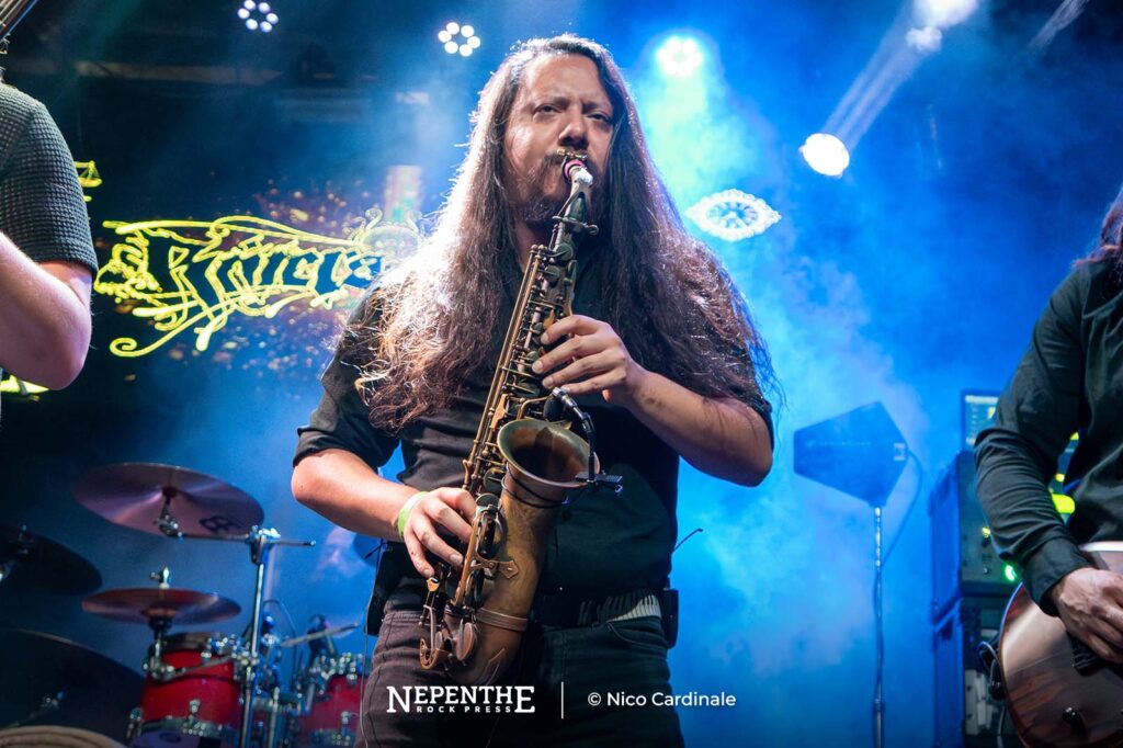 La fusión de voces limpias entre Adam Biggs y Andy Thomas le dio un sentido ritualista a la escena. Esta se rompía con los guturales y la transformaban en un death metal clásico. En esos instantes ceremoniales tocaron solos espaciales y ritmos armoniosos. Una de las cualidades de los pensilvanos es que cuentan con una sorpresa ya conocida: Un saxofonista, Patrick Corona. Al aparecer Patrick se fue todo a la estratósfera. Generaba solos jazzeros para darle más textura y color a la sonoridad instrumental. Incluso apareció en las rupturas más pesadas, haciendo que el público se metiese al pogo o que incursionase en un wall of death liderado por un solo de saxo.