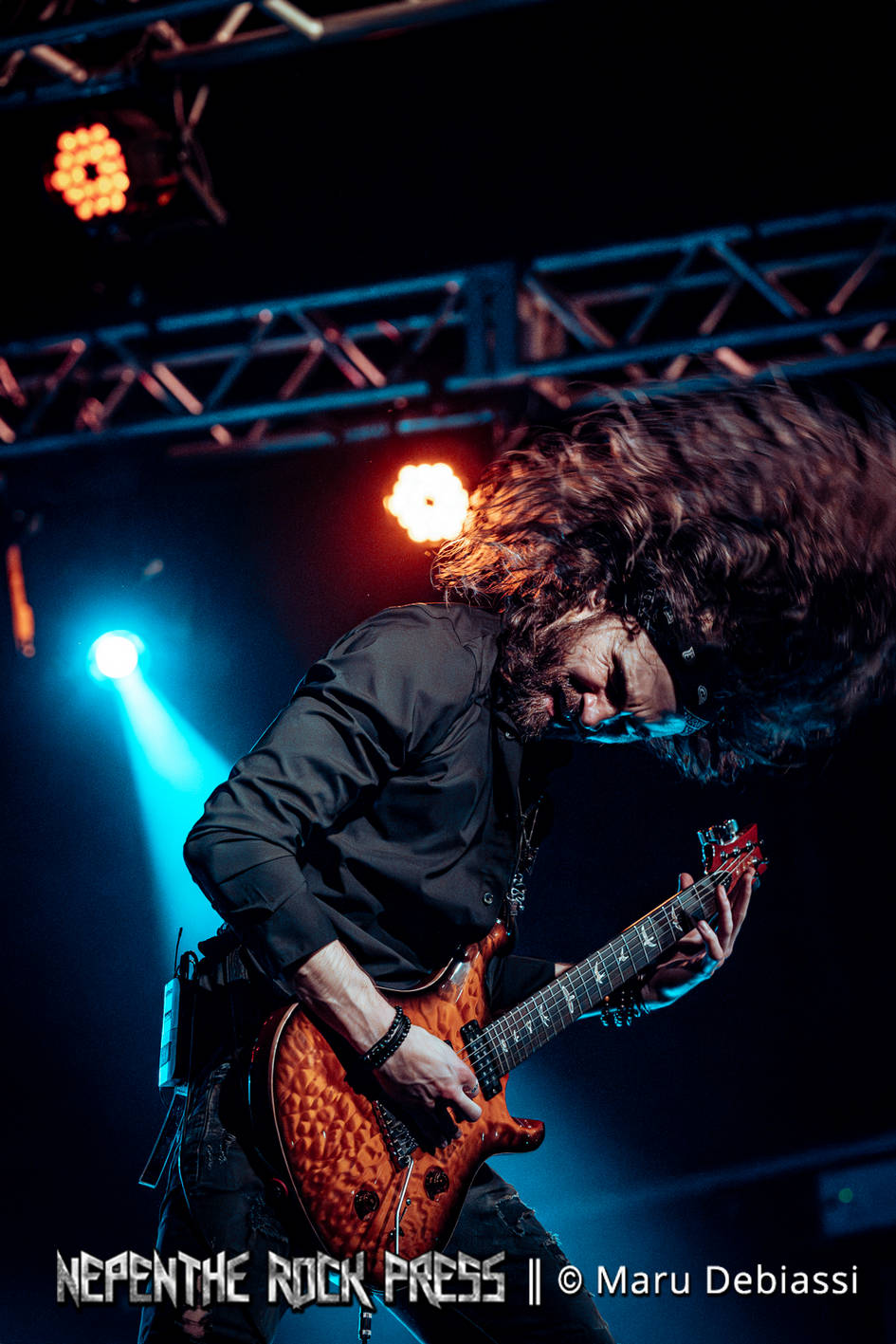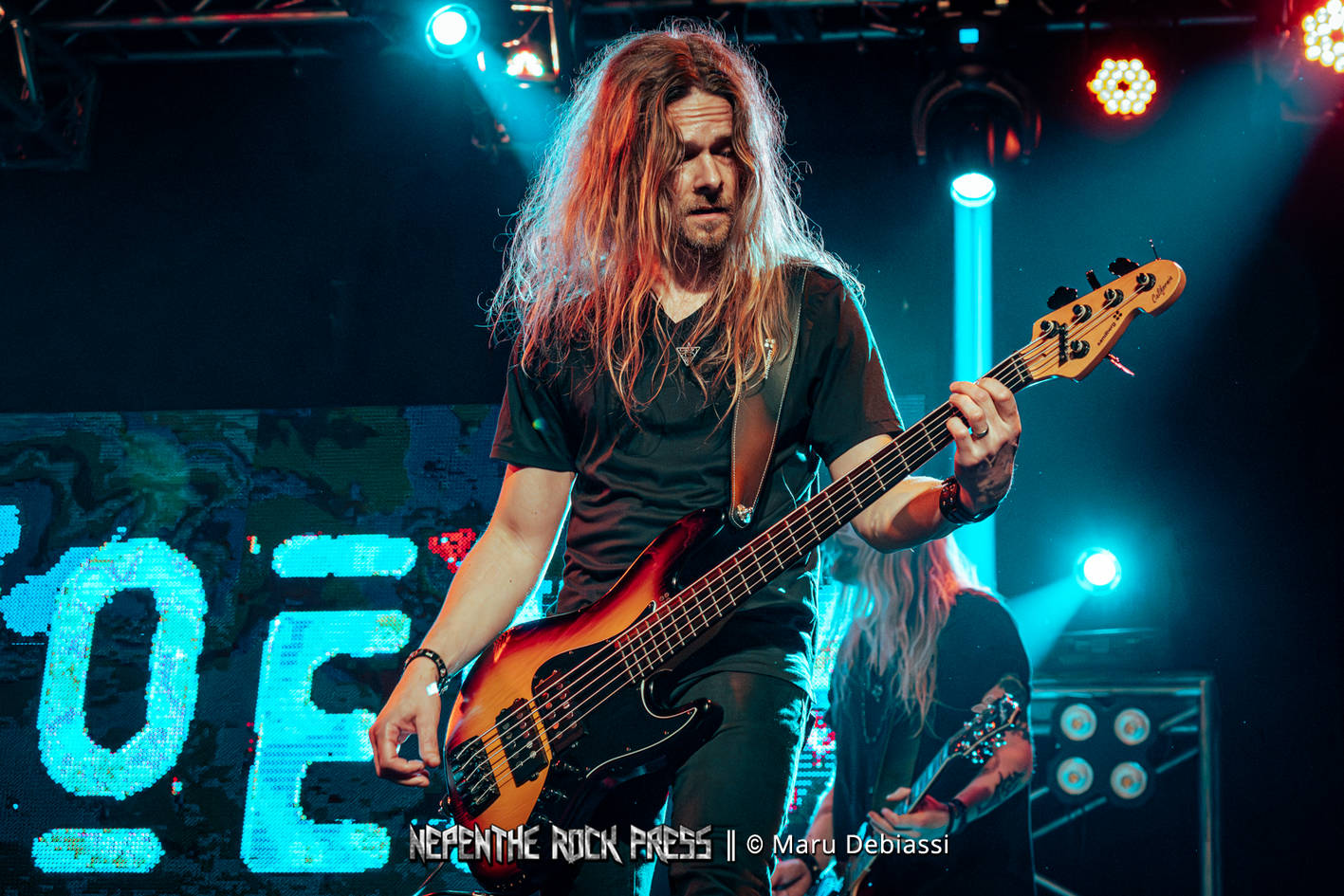 Por suerte, para cuando las agujas marcaron las 22 (media hora más tarde de lo establecido) y se desató la locura con “Sincere”, track de apertura de su última placa, los inconvenientes anteriores habían sido resueltos en su mayoría. Si bien el local de Avenida Sáenz 459 estaba lejos de estar lleno, las voces de los presentes hicieron que parezca lo contrario desde el primer momento, acompañando a las cuerdas vocales de Joel Ekelöf. El conjunto nórdico tocó una lista compuesta principalmente por temas de sus últimas dos producciones, la nombrada “Memorial” de 2023 e “Imperial” de 2021. La performance conjunta de los músicos fue muy sólida y todos interactuaron con el público, especialmente cuando el vocalista invitó a la gente a corear el riff del title track del último álbum y el de “Antagonist”, que ya son marcas registradas de los conciertos de la banda.